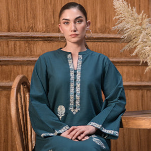 Black textured kurta. Round collar neckline with slit and lace details, lace detailing on inner sleeves with lace edging on cuffs, hemline and side slits. A straight silhouette comes with a tulip shalwar with lace finishings. ?Çï